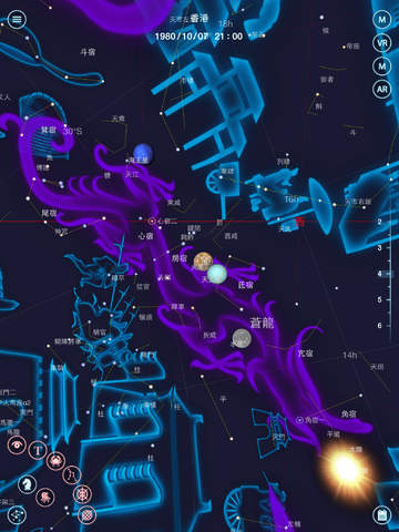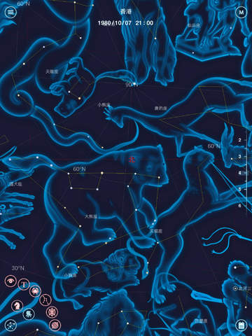 透過當中的電子星圖,你會發現在古代中國和西方的文化中,人們對星空產生了不同的聯想,因而創造出截然不同的星座或圖案。電子星圖具備三種運作模式:「追蹤模式」透過定位功能及監察流動裝置的指向,即時模擬指向的天區,幫助你辨認天體和星座的位置;「實境模式」利用擴增實境技術,在攝影機的星空畫面上,即時指示天體或星座的標記或圖案;而「手動模式」則讓你隨意選擇模擬的天區。點選電子星圖顯示的星座、行星、太陽、月球或三垣二十八宿,便能夠收聽附載的錄音資料,了解星座和天體的故事。