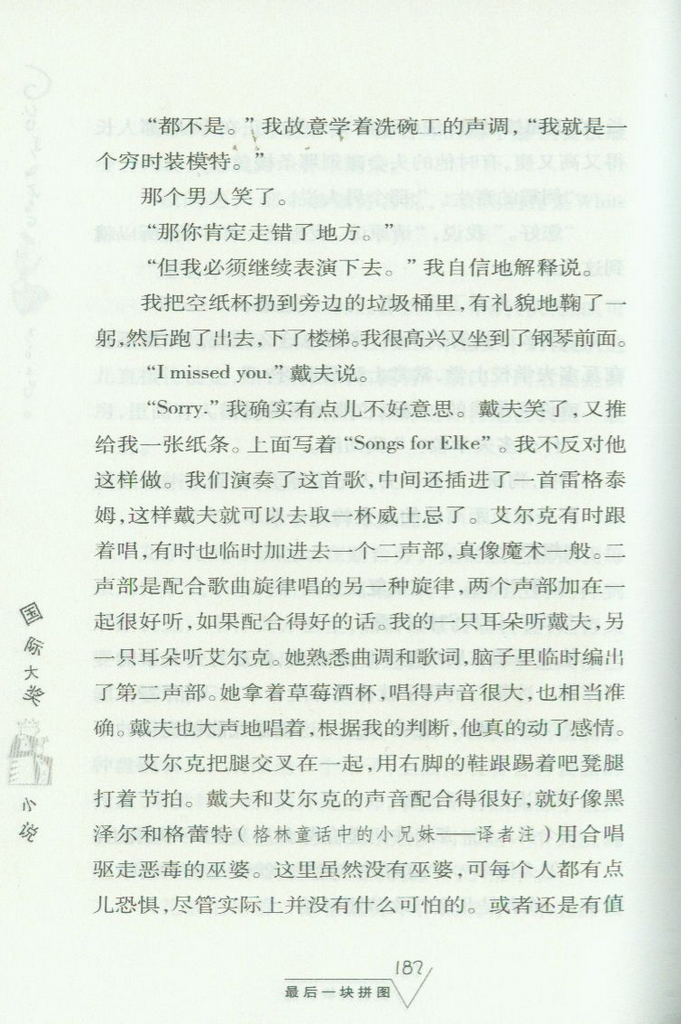 西古德·普吕茨1960年生于德国北部梅克伦堡州的布兰肯希小镇。大学时代在柏林度过,主修数学和音乐。毕业之后,他一直是一位自由音乐人。但他对艺术的追求并不仅仅停留在音乐上,他的首部小说《最后一块拼图》一经问世,就获得了读者和评论界的高度赞扬,并在转年荣获德