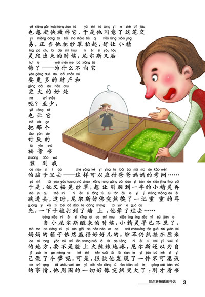 《尼尔斯骑鹅旅行记》是唯一一部获得诺贝尔文学奖的童话作品。讲的是一个不爱学习、喜欢恶作剧的顽皮孩子尼尔斯,因为一次捉弄小妖精,而被小妖精用魔法变成了一个小人。他骑在他家的大白鹅背上,跟着一群大雁出发作长途旅行。通过这次奇异的旅行,尼尔斯增长了很多见识,结识了许多朋友,也碰到过好几个凶恶阴险的敌人。他在种种困难和危险中受到了锻炼,最后尼尔斯回到了家中,恢复原形,变成了一个好孩子。