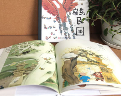 《鹤民国》:这是一个中国古老的传说,它讲述了美丽小岛上的小人国国民,一直受到凶猛残暴的海鹤的骚扰,直至一位勇敢的年轻人利用雕刻石人的办法,终于战胜了海鹤的故事。图书内容引人入胜,绘画精美,充满浓厚的名族色彩。