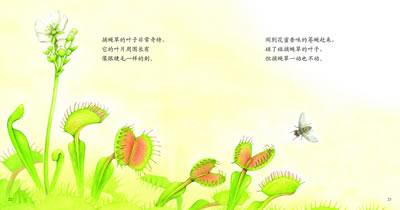 《食虫植物》-植物撑起这个丰富多彩的世界,没有植物就没有动物和人类,其实不止虫子能吃草,原来草也能吃掉小虫子!通过精美的图画,让我们看一看这些食虫动物究竟长什么样,它们又是怎样以静制动抓住小虫并吃掉的。