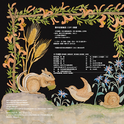 本书创作灵感来自于1224年由圣弗朗西斯在意大利的阿西西写的一首赞美诗。与文字交相辉映的精美插图源自剪纸艺术家帕梅拉?道尔顿之手。本书展现了一幅幅美丽动人的自然画面,赞美万物的可贵,告诉人们要常怀一颗感恩的心。本书文字优美,内容清新,作者以赞美诗作为创作源泉,并怀着一颗真诚的心,饱含深情地赞美了大自然中事物,使人感到大自然中的美好,一切事物的存在都是那么自然和谐,另读者对生活充满了希望,心灵受到了洗涤。本书插图由剪纸构成,给人以细致入微生动形象之感。