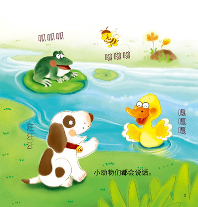 《象声词训练》:针对刚开口说话的婴儿,画面简单有趣,象声词易于婴儿模仿。