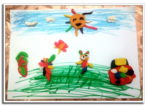 工程师爸爸 主题 婷的橡皮泥画——婷婷兔去上学