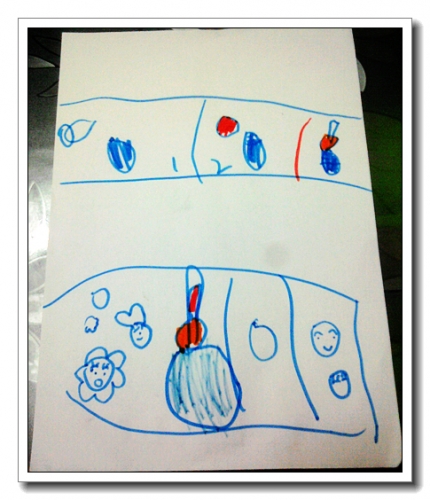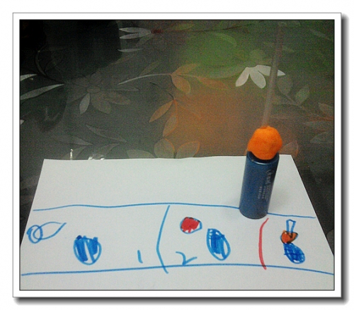 是在一本旧的《幼儿画报》上面看到的,婷一直要求做。其实很简单,但书上当时写的材料是小玻璃一只,还要在瓶盖上面钻孔,我一直在思考材料中。