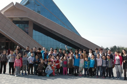 十月五日在米奇绘本馆馆长的带领下我们二十多位家长带孩子去昌吉参观恐龙馆。 我家魏宝是这次活动的发起者之一,所以去恐龙馆他是特别的开心,去的一路上小朋友们都在争着表演,表演的内容有脑筋急转弯、唱歌、诗歌朗诵(诗歌朗诵最经典的是小朋友朗诵的“金秋时节,景色宜人,层林尽染,叠翠流金,天高云淡,大雁南飞,秋高气爽,山河壮壮美,五谷丰登,瓜果飘香------”一路上是开心连连笑声不断。