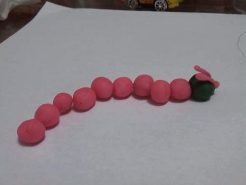 10月26号晚,魏宝回到家就要我帮他打开橡皮泥盒子的盖子要玩橡皮泥,昨天不怎么会玩我也没有管他,今天他把我拉到身边,说妈妈你给我做一个香蕉吧,我不会做香蕉。我说好吧,我一边做一边告诉了他怎么做,他才不理会我来,就自己在忙活着。      做完了香蕉后,他有说妈妈我们做一个毛毛虫吧,我说好但是要魏宝自己错毛毛虫的身体,他也同意了,我就帮他把橡皮泥分成小块,他在搓毛毛虫的身体。我们一会就做好了。