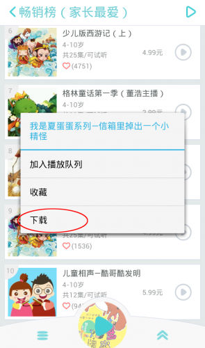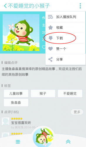 免费故事,故事详情页》点击右上角的按钮》点击下载按钮,可下载故事;或长按故事》点击下载,亦可下载故事
