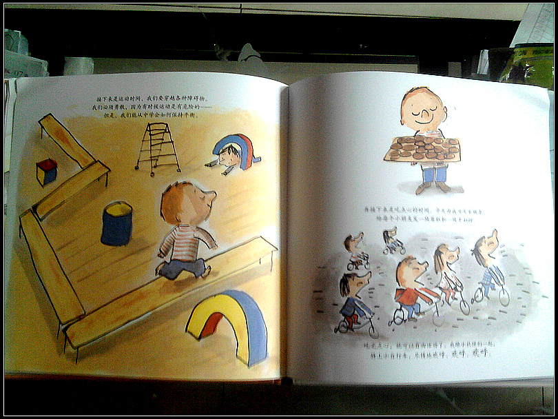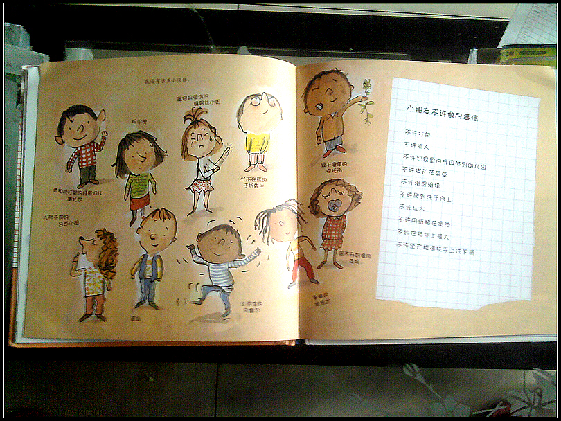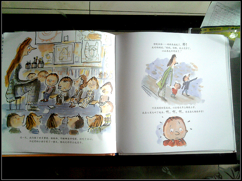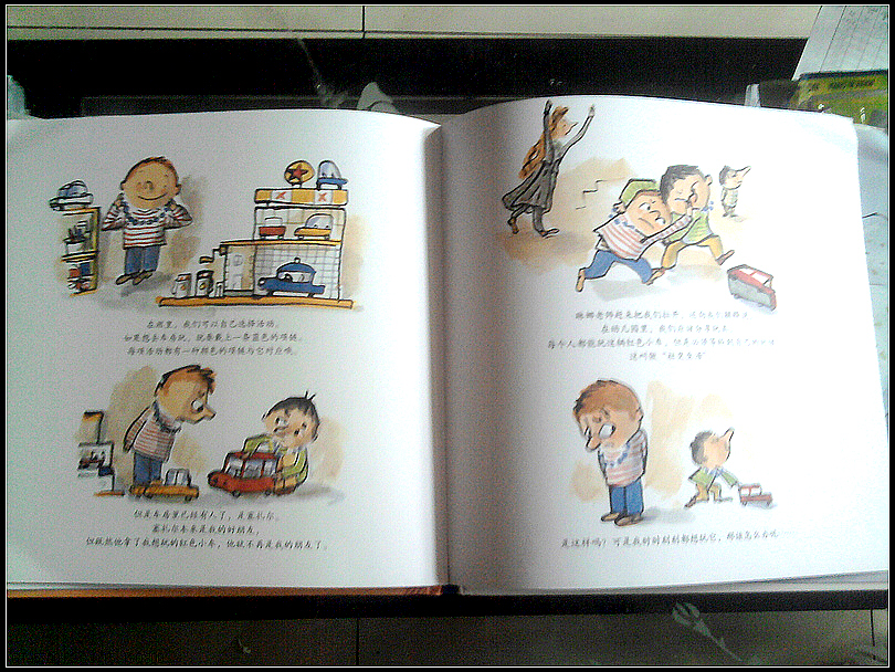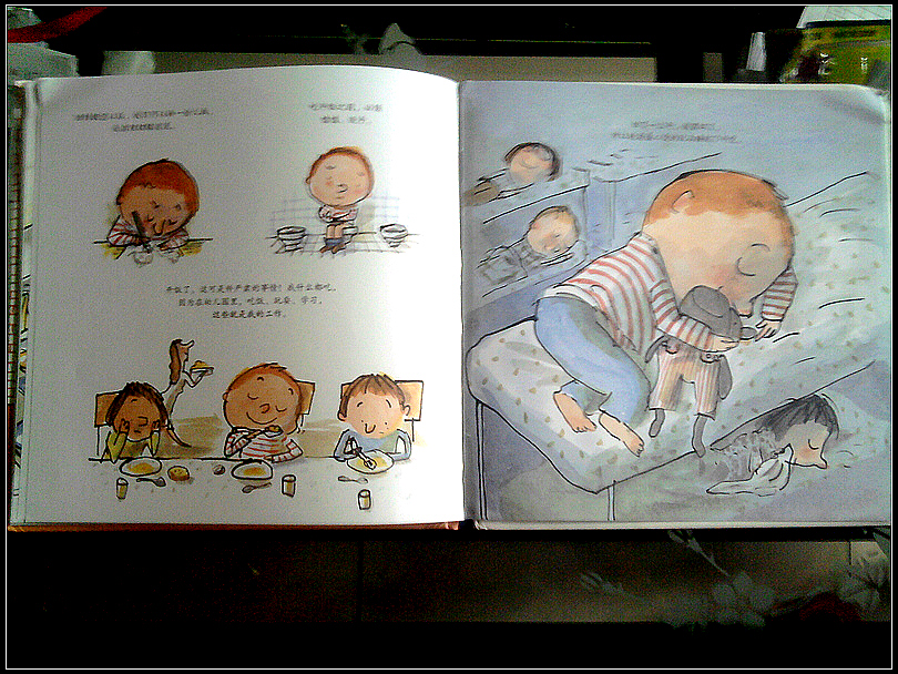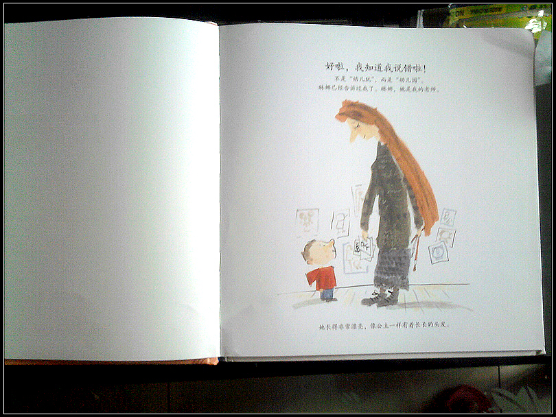 我自己翻看《我爱幼儿园》这本书的时候,没想到它会让孩子那么喜欢。也许这是认字与不认字的区别之一,我看了字面意思,孩子看了图中内容,关注的方向与我不甚相同。