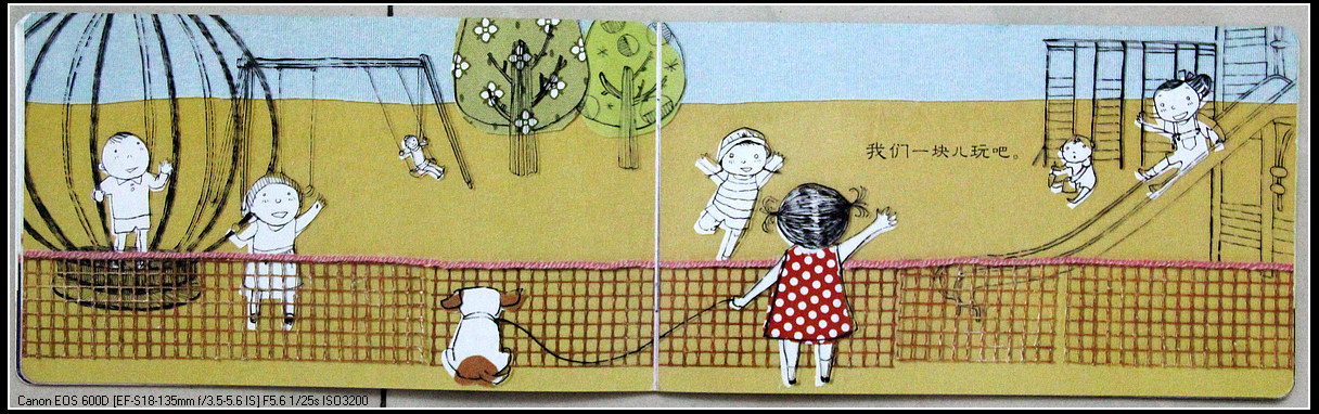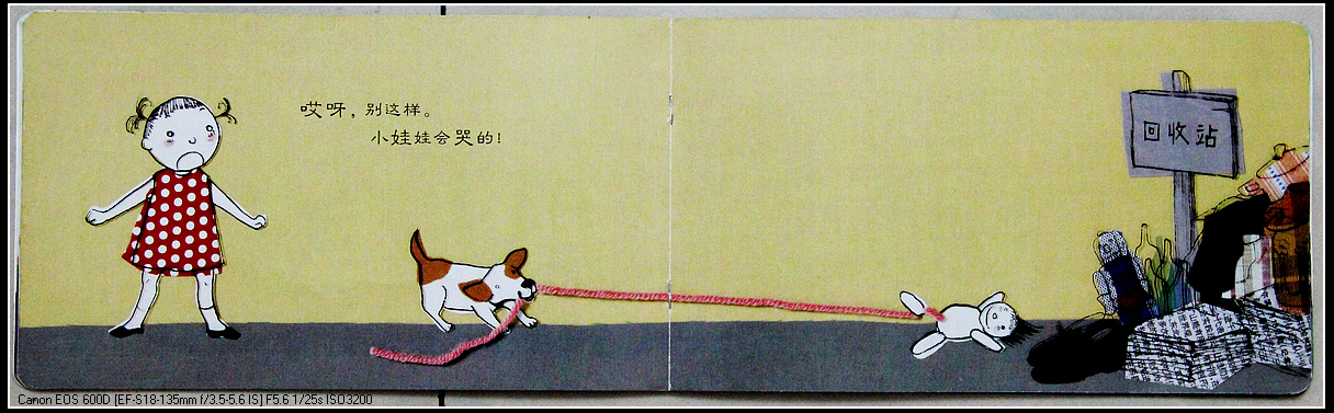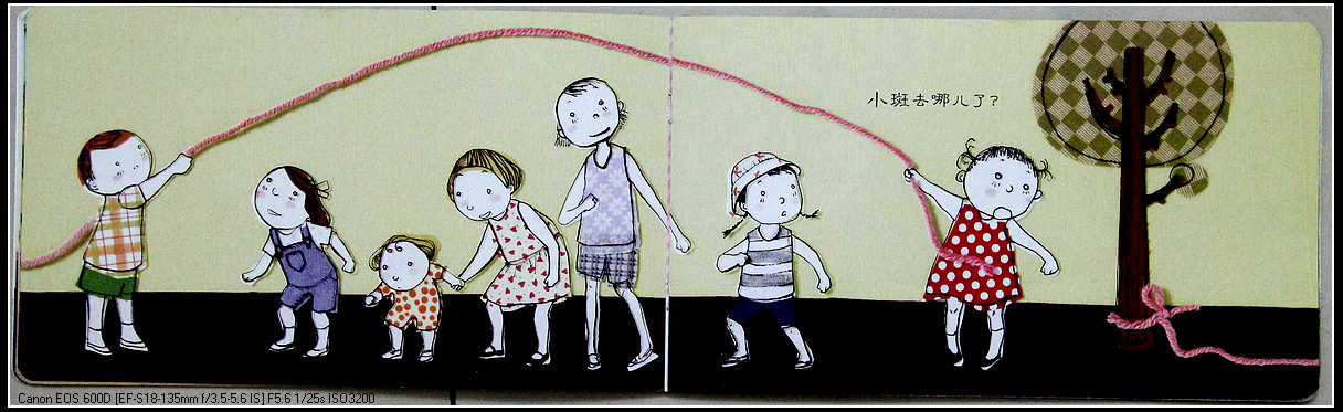 跟封面相比,图上少了什么?小狗的姿势一样吗?线摆成的字一样吗?