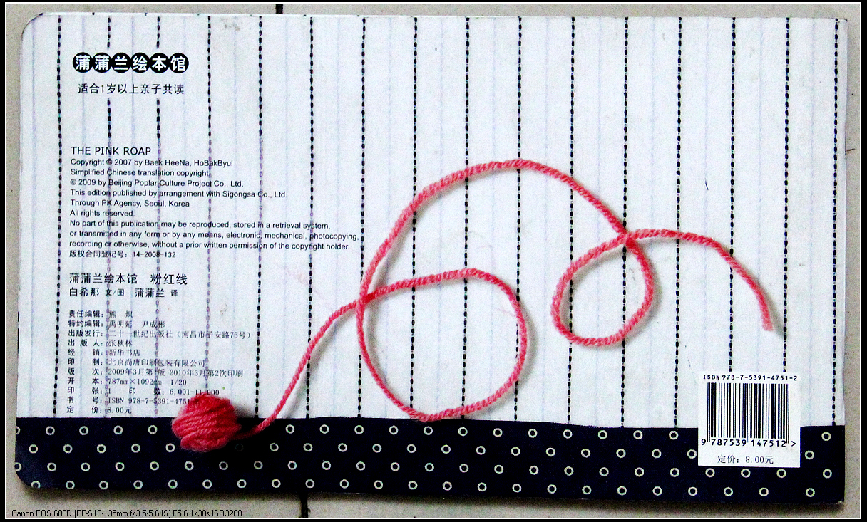 《粉红线》,由二十一世纪出版社出版,白希那编绘,蒲蒲兰译。是508长长绘本之一。